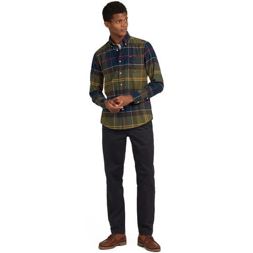 Chemise Edderton de Barbour en flanelle de coton à motif tartan dans les tons bleu et vert. Poignets réglables et poche poitrine avec logo. Tailored fit.