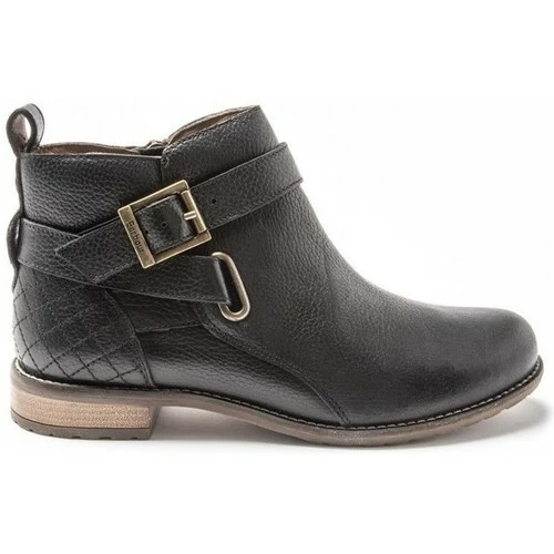 Ces bottines noires décontractées sont fabriquées en cuir souple et présentent un talon matelassé et une boucle enveloppante de la marque. Complétées par une doublure en tartan classique et une semelle extérieure en caoutchouc portant la marque Barbour.