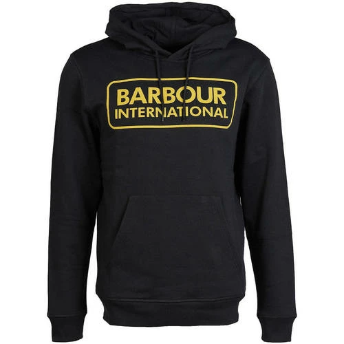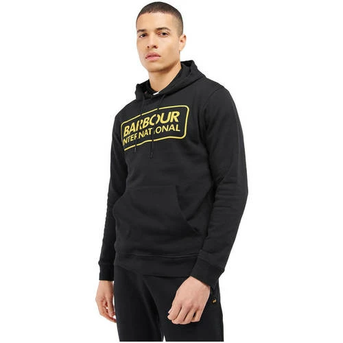 Sweat-shirt à capuche Pop Over Barbour International en coton molletonné noir avec maxi logo contrastant sur le devant. Capuche avec cordon de serrage, poche kangourou et poignets et ourlet côtelés.