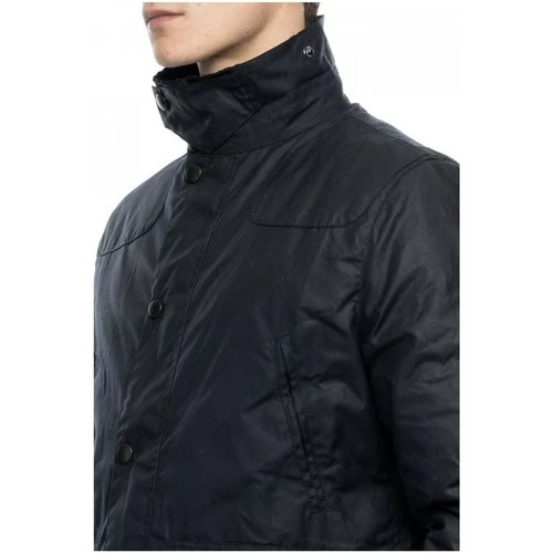 Parka senza cappuccio, con chiusura zip e bottoni, caratterizzato da ampie tasche frontali.